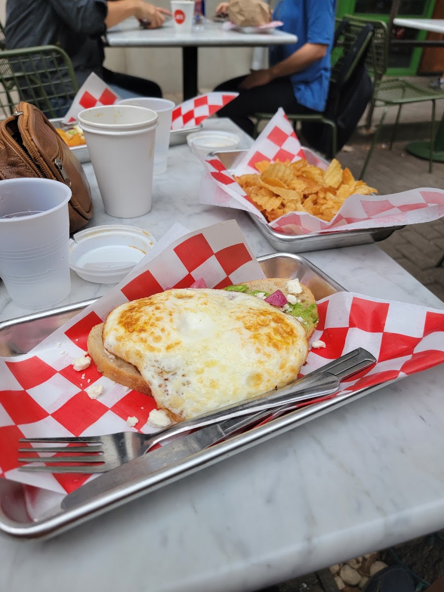 Stopped here randomly for breakfast while I was visiting Austin and it was SO good. Their iced coffee was great and I got their egg white & feta wrap special which was also very good. Nice outdoor patio and a cool interior also. Quick and nice people working here. 10/10.
